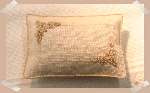 Broderie en soie toujours sur de la Batiste et j'ai teint mes fils en dégradé dans du thé.